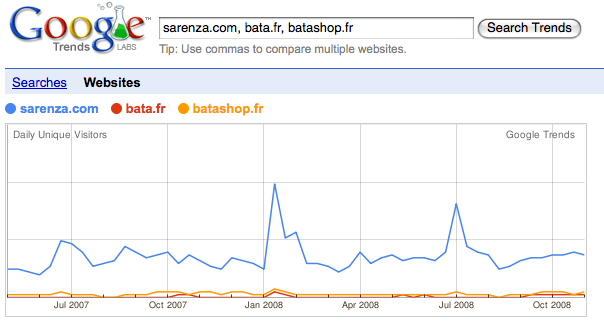 Tout comme Spartoo, son concurrent Sarenza fait des ventes privées (« ventes exceptionnelles »). Ainsi, du jeudi 20 novembre, à partir de 7h, jusqu’au dimanche 23 novembre, minuit, a lieu une vente privée de chaussures Unisa. Il s’agit de la collection automne/hiver 2007, pour les petites fillles. Les prix chutent jusqu’à -50%.