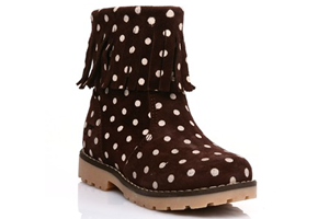 Ces bottines à pois et frangées raviront votre fille et ses copines de cours d’école. Elles sont en cuir marron et sont en promotion actuellement sur BrandAlley.
